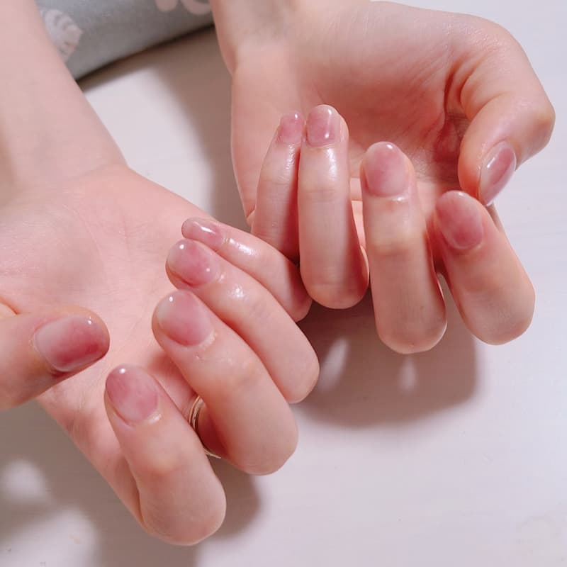 ちゅるちゅるの桃ネイルです